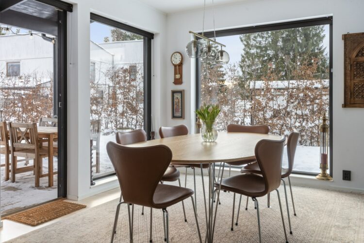 Här, bara cirka 20 minuter från Slussen, möter småskalig trädgårdsstad modern arkitektur med en lätt industriromantisk karaktär. Radhuset är ett utbyggt och påkostad gavelhus om 143 kvm, med villakänsla, generösa ljusinsläpp och en plan, insynsskyddad tomt som bjuder in till både lek, middagar och långa sommarkvällar. Tillbyggnaden med matsal har blivit hemmets naturliga hjärta – en plats där vardag och fest ryms lika självklart.